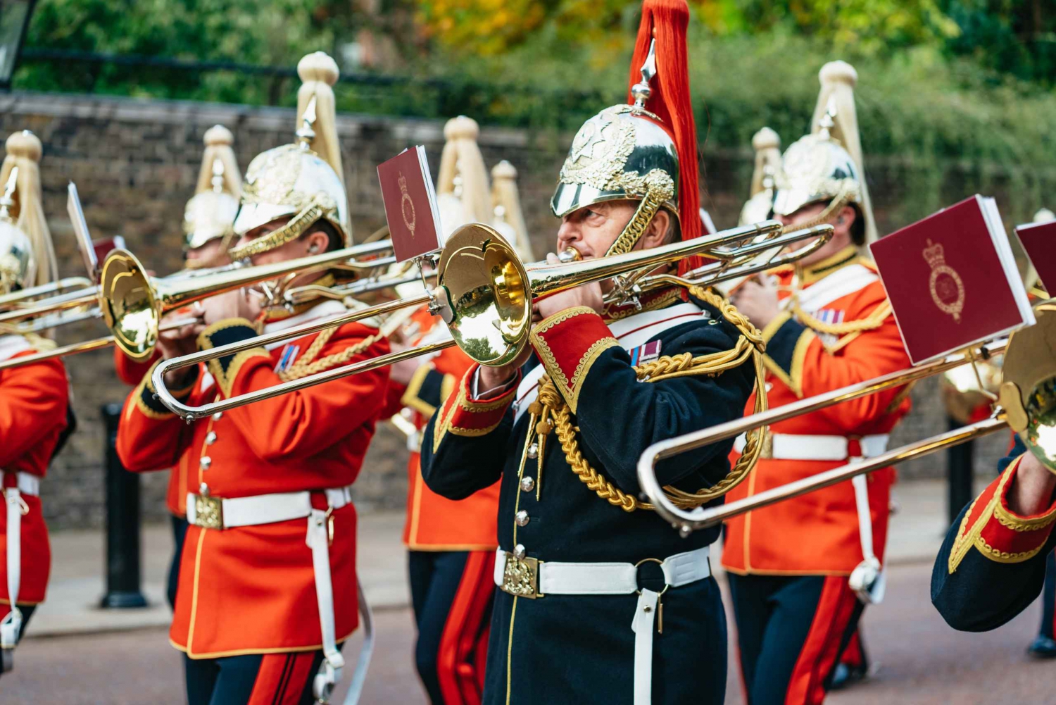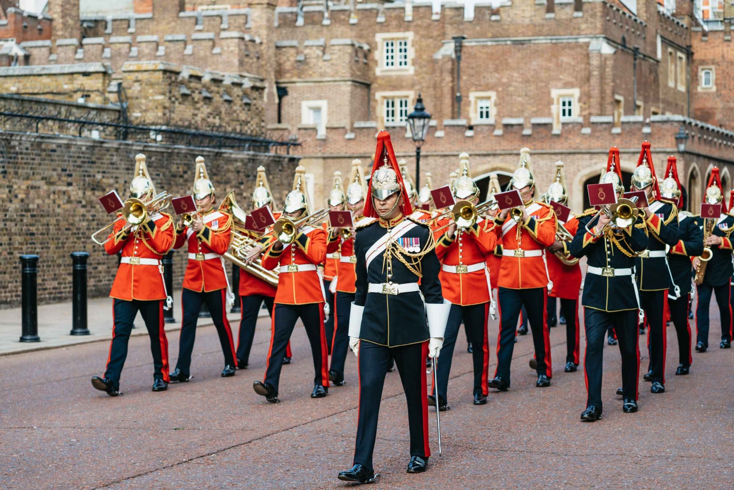 • Følg vagterne til fods på deres rejse mod Buckingham Palace