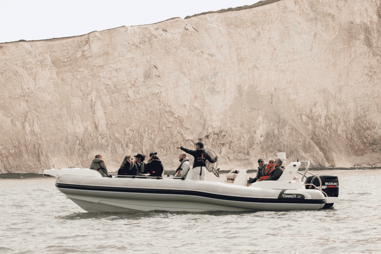 Oplev en uforglemmelig 1,5 times bådtur langs den fantastiske Sussex-kyst og se de majestætiske Seven Sisters Cliffs fra havet! Du kan gå om bord fra Newhaven Marina, som ligger en kort køretur fra Brighton eller Eastbourne, og udforske århundredgamle steder, mens du hører fængslende historier fra fortiden. Nyd den betagende udsigt over de eroderende klipper, og hold øje med det lokale dyreliv, f.eks. sæler, marsvin og en koloni af kutlinger. For at få mest muligt ud af turen vil vi lytte til musik, mens vi vender tilbage til Newhaven i en pragtfuld fart! En uforglemmelig oplevelse, som man ikke må gå glip af!