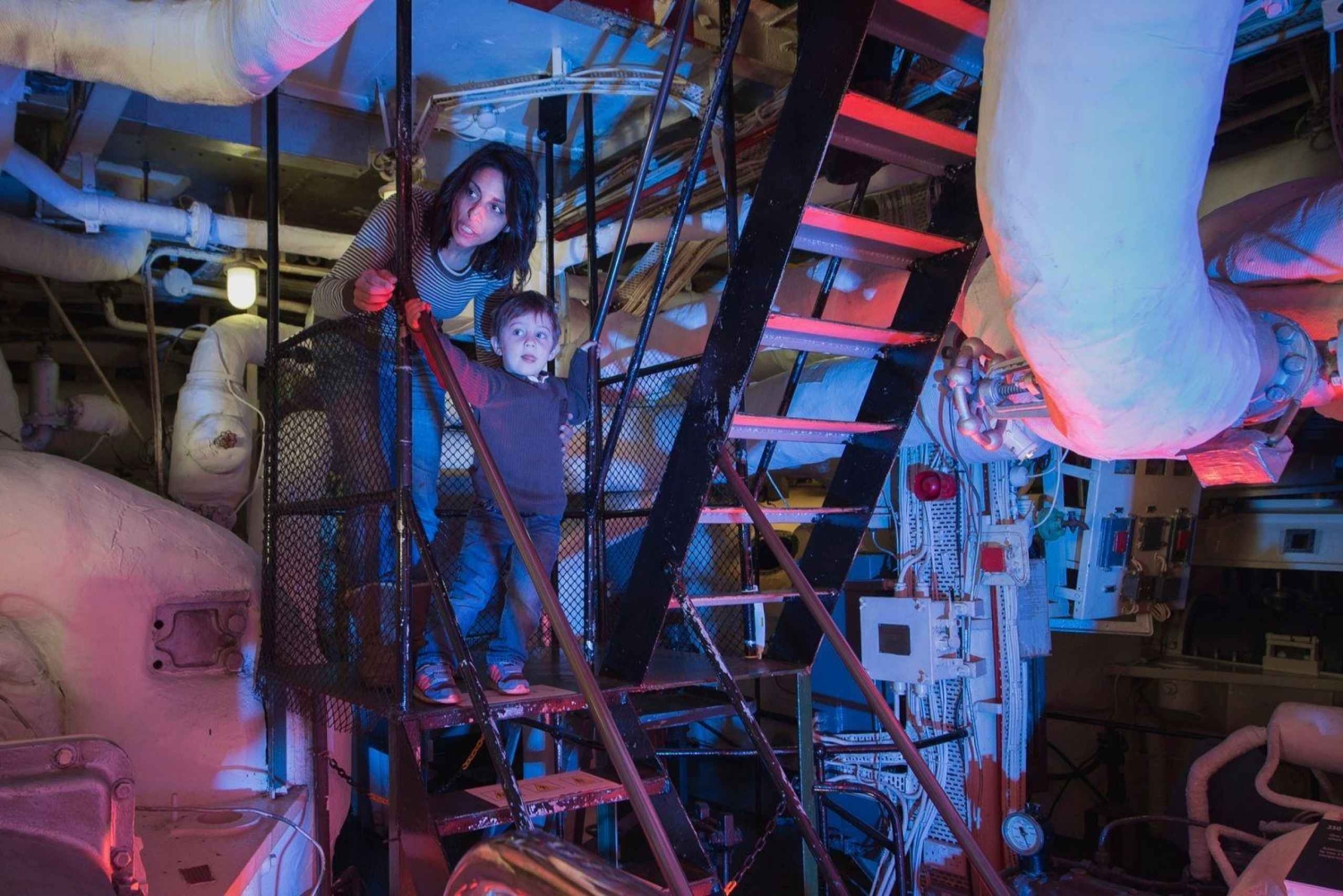 Denne oplevelse anbefales ikke til personer med begrænset mobilitet eller børn under 1,22 meter, da der er flere stiger, man skal op ad for at se alle skibets dæk