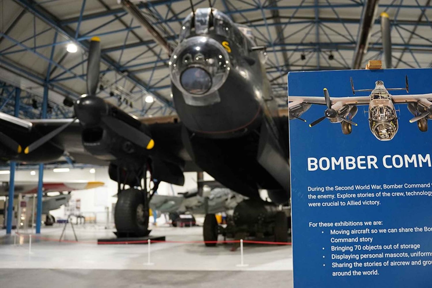 Folge einem fachkundigen Guide durch die Bomber Command Ausstellung - Strike Hard, Strike Sure: Bomber Command 1939-1945. Erfahre mehr über die Rolle der RAF-Bomber Command-Mitarbeiter während des Zweiten Weltkriegs und lerne die wichtigsten Geschichten, Flugzeuge und Artefakte kennen.