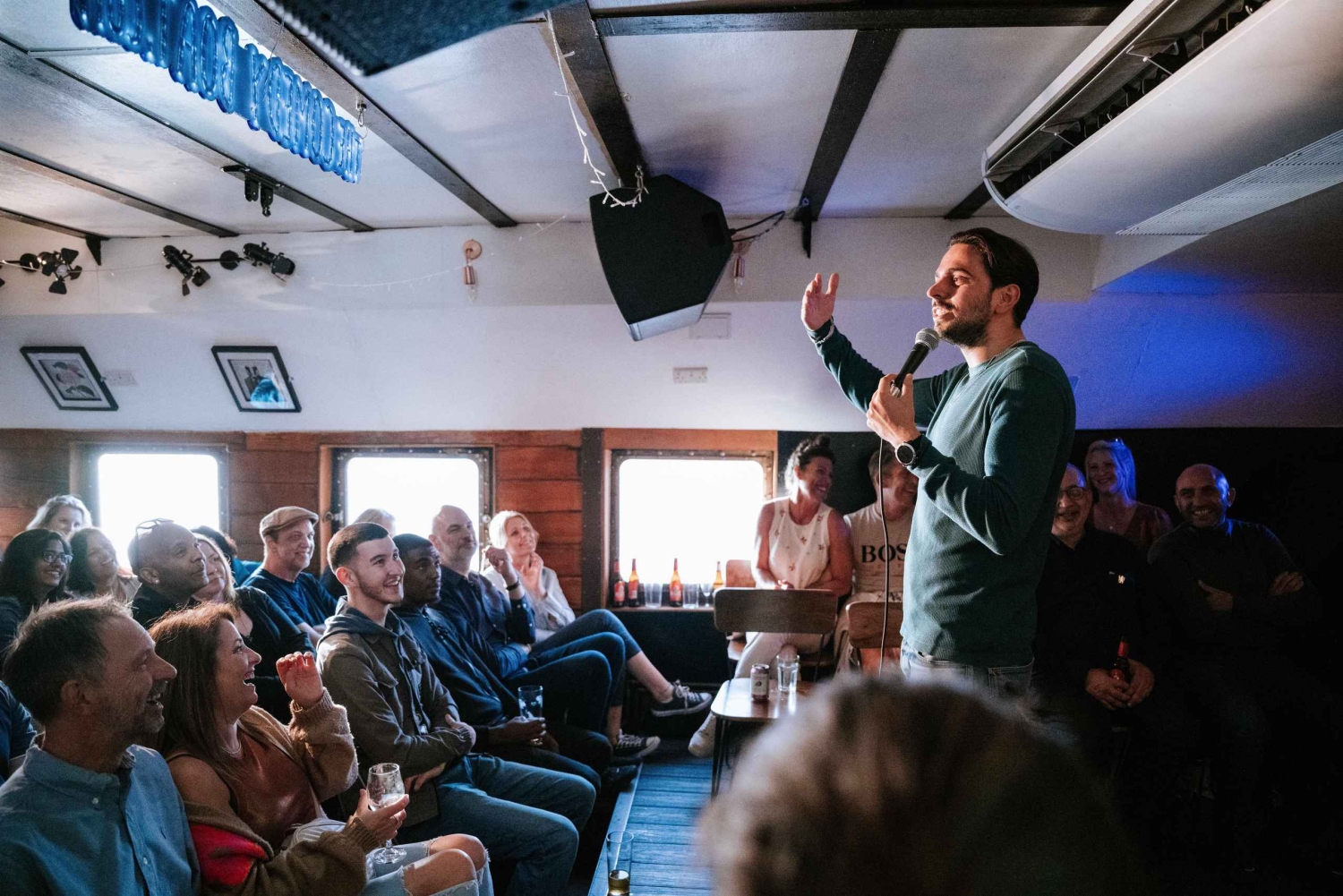 Emplacement : The Rum Monkey Comedy Club sur la péniche Battersea.