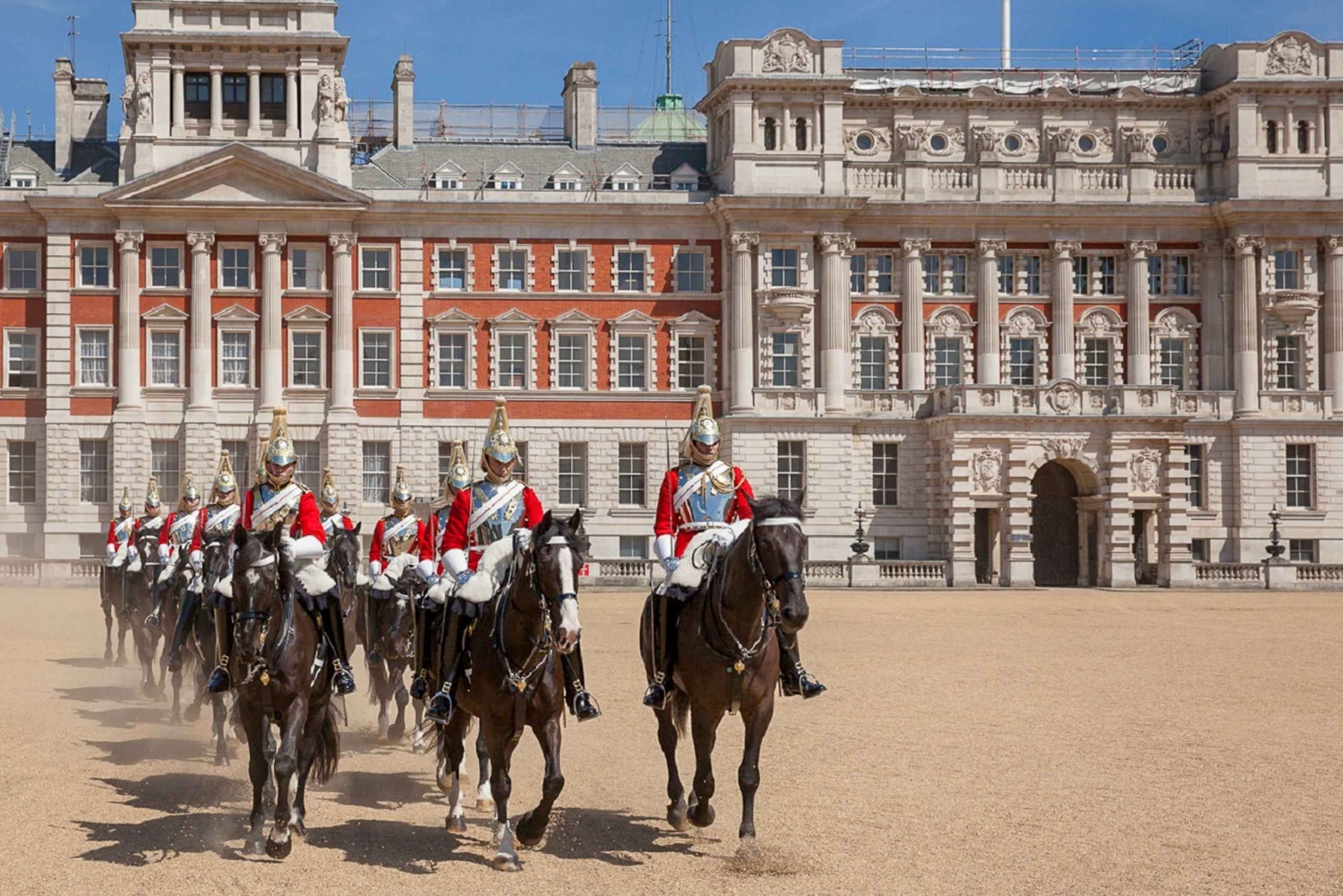 De wisseling van de paardwacht in Horse Guards Parade omvat bereden cavalerie van de Household Cavalry, dit is wat u zult zien als u een tour boekt op dinsdag en donderdag. Op zaterdag staat de show bekend als de 'Guard Mounting' of 'Inspection of the New Guard' in House Guards Parade. De inspectie houdt in dat de kapitein van de New Guard de soldaten inspecteert om ervoor te zorgen dat ze in orde zijn met hun uniformen en uitrusting in onberispelijke staat, voordat ze hun taken overnemen van de Old Guard
