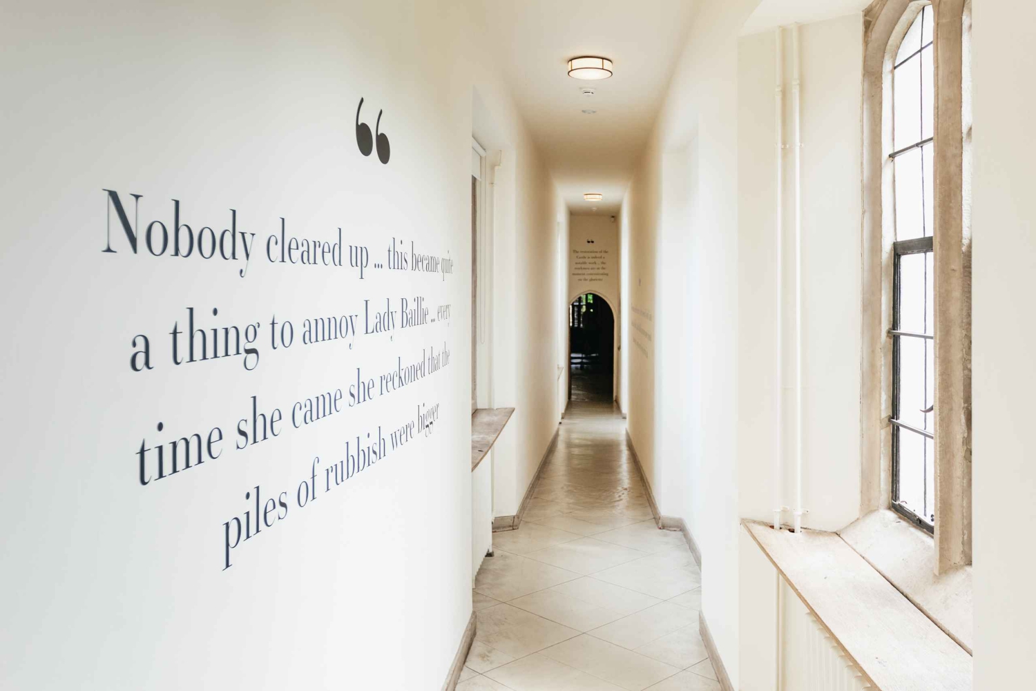 Slottet ligger midt i en innsjø og er omgitt av et 500 mål stort parkanlegg og hager. Gå inn i slottet før dørene åpnes for publikum, og opplev dets magi i en atmosfære av stillhet og ro. Ta deg tid til å utforske slottsparken og finne Lady Baillie Garden, med utsikt over innsjøen.