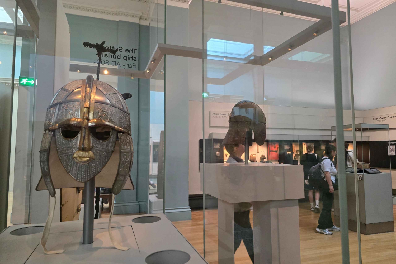 Descubra os tesouros da Inglaterra anglo-saxônica com foco no enterro do navio Sutton Hoo. Maravilhe-se com o capacete, o escudo e outros artefatos intrincadamente trabalhados que revelam o artesanato e a cultura do início da Inglaterra medieval.